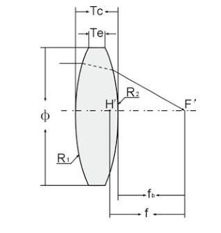 PS: Φ- Diameter,R1- Radius,Tc- Center thickness,Te- Edge thickness,f- Focal Length,fb- Back focal length